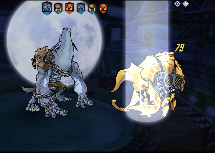The Beast is an anthropomorphic mammal creature who's characterized as a werewolf which is implied in its second attack Lunar Infusion. It's wearing chain gears on its upper body and pants on its lower body. In its one arm tangled in chain, it equips a gear in its shoulder which's consist of metal layers and a skull jammed in there.