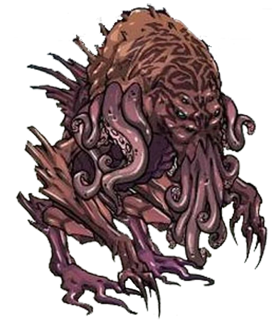 It resembles Cthulu, an "Old God" of Lovecraft, with tentancles. It is bipedal and has two arms. It has one large eye on its forehead, which is usually closed if not using the attack "Eye of Madness".