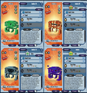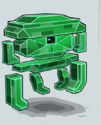 Invadron is an inorganic being made up of green titles that form the body and limbs. It has a shiny hole in the middle that acts as an eye and seems to be levitating. In his star versions, his color changes(all versions), he gets another eye(from silver to platinum), and has four cubes flying around him(from gold to platinum). He also has the rainbow color in his platinum version.