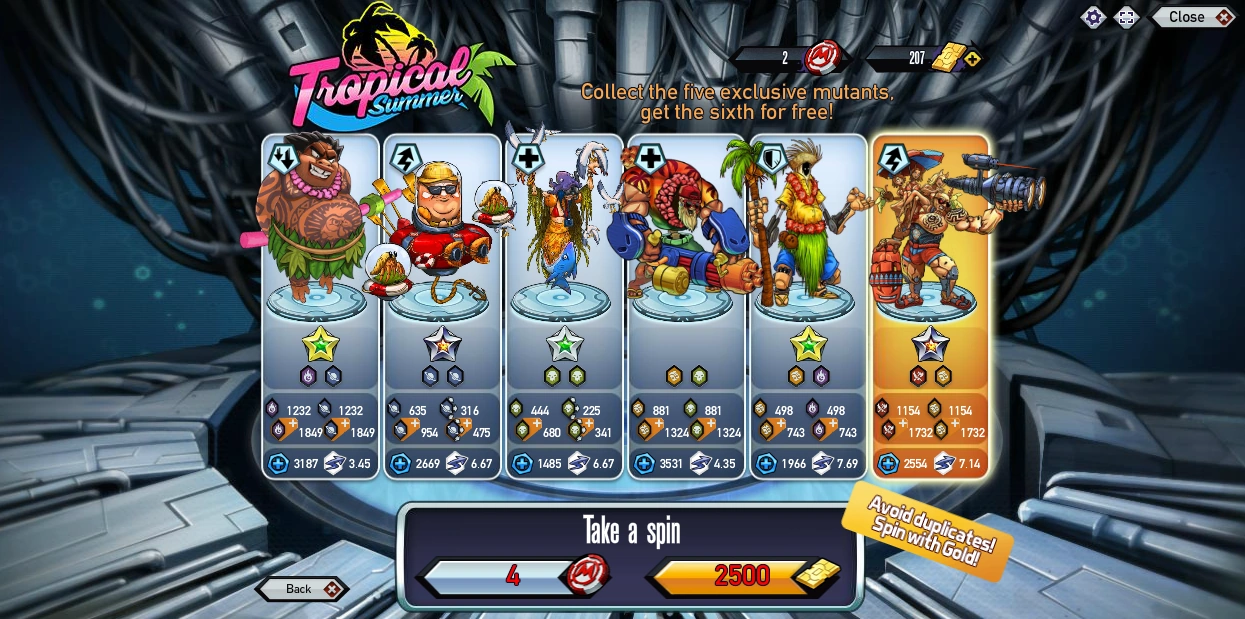 Once the player have collected all 5 mutants above, they will reward the exclusive mutant Gargantus (Gold version).