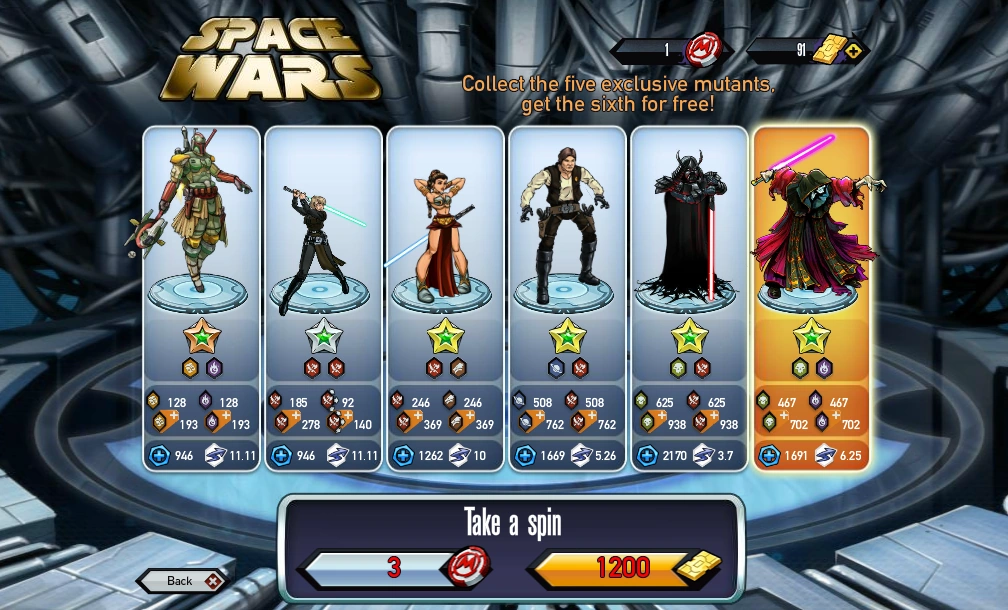 The Space Wars reactor features mutants which have been given alternate artwork to appear like some characters from the Star Wars franchise. They are as follows: