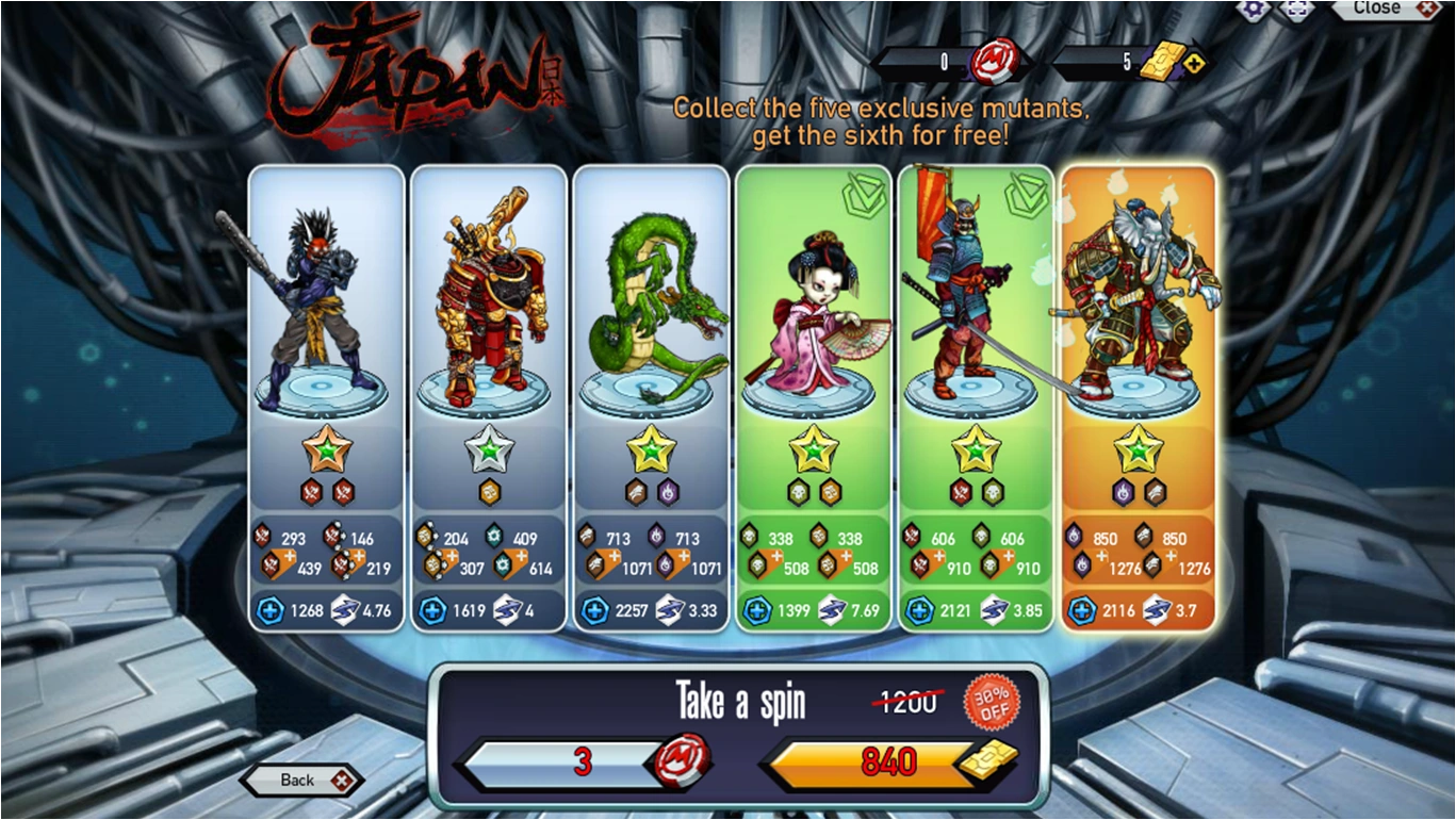 Once the player have collected all 5 mutants above, they will reward the exclusive mutant Neo-Urban XIII (Gold version).