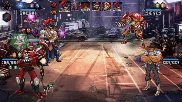 ↑Spartac tosses all of the weapons around him up and off screen. He then jumps up as well to send a barrage of the weapons on each enemy. Similar to Scarlett's "Avenging Axe" attack.
